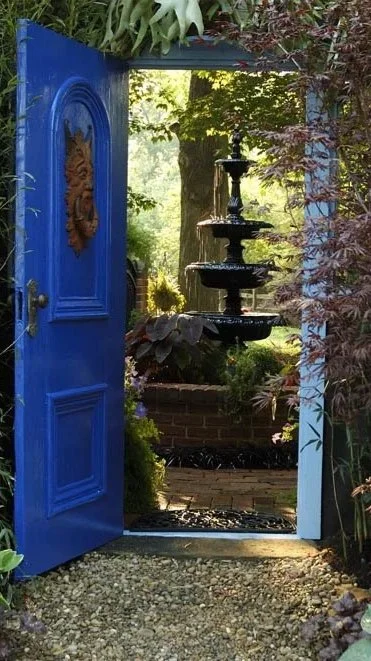 Award winning garden at the 2007 "Rhythm and Hues" Cleveland Botanical Garden Flower Show. Wrought iron railings and fountain set the mood for this calming inner courtyard which echoes back to the origination of Jazz and Blues. Fragrance, color, and glass delight the senses. Once inside the brick wall enclosure this garden transforms you to a different time and space.